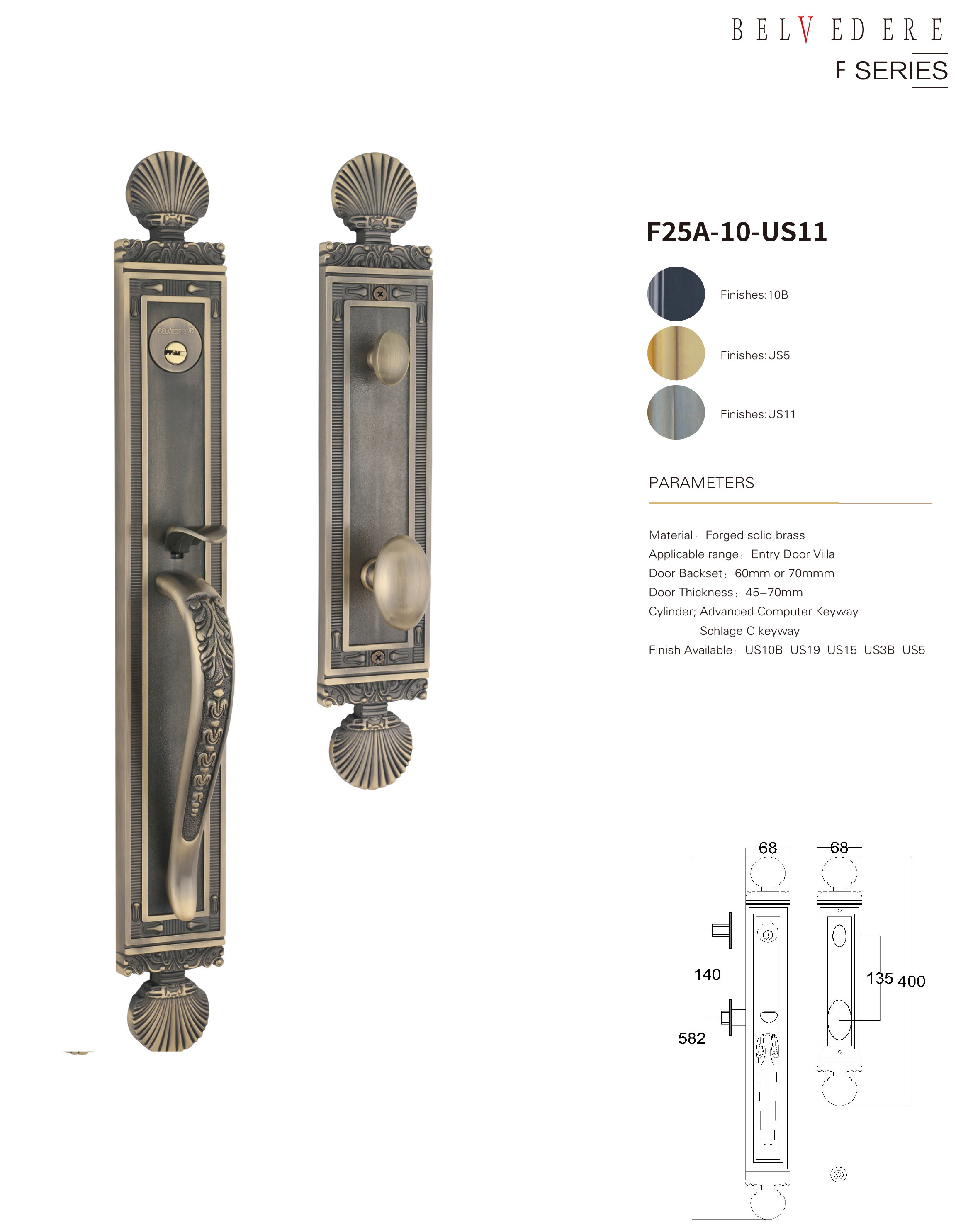 • 适配不同材质类型的别墅进户门:铜门,仿铜门,铸铝高,原木门,锻铁大门,防盗门等不同材质,从45-90mm不同厚度都能适配,单开门,子母门,双开门等不同风格