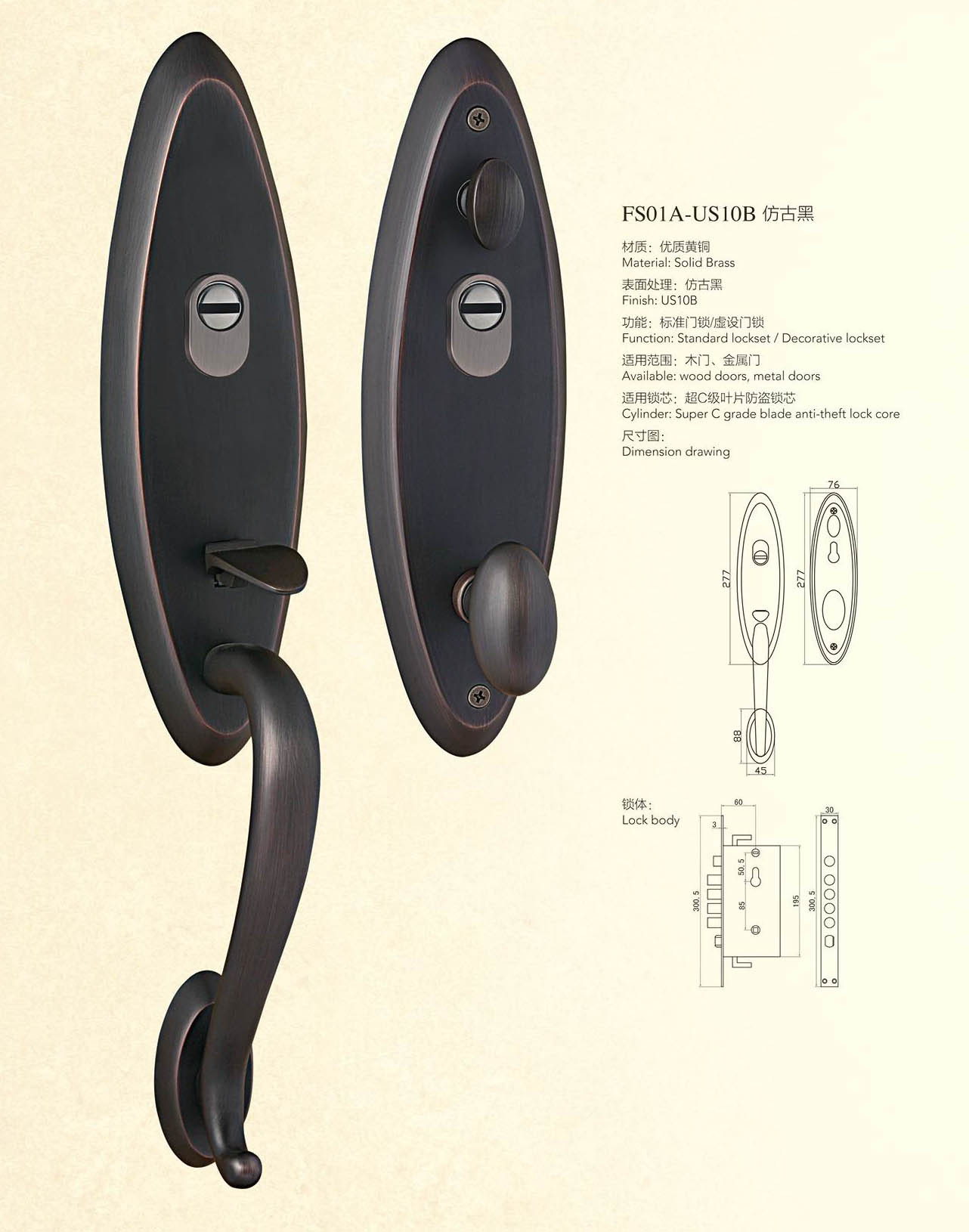 • 适配不同材质类型的别墅进户门:铜门,仿铜门,铸铝高,原木门,锻铁大门,防盗门等不同材质,从45-90mm不同厚度都能适配,单开门,子母门,双开门等不同风格