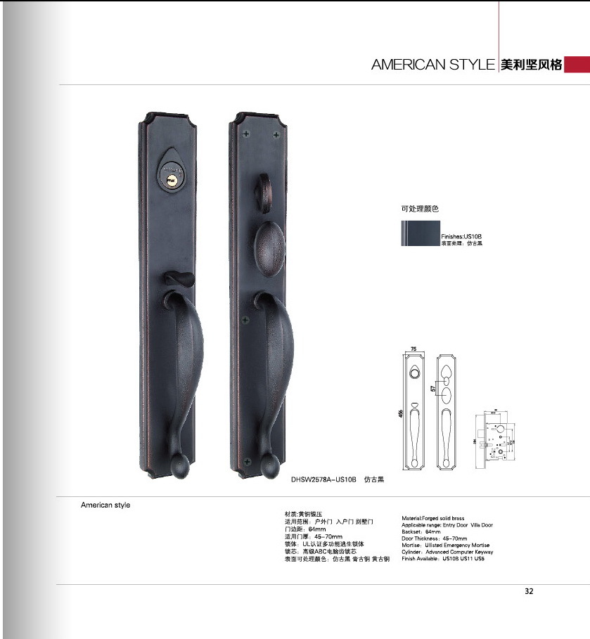 - 适应各种材质类型的别墅入户门:铜门、仿铜门、高品质铸铝门、实木门、锻铁大门、防盗门等——每种门都因其独特的材质而量身定制。 45-90mm 可适应多种厚度,提供单门、上下双门等多种独特款式。