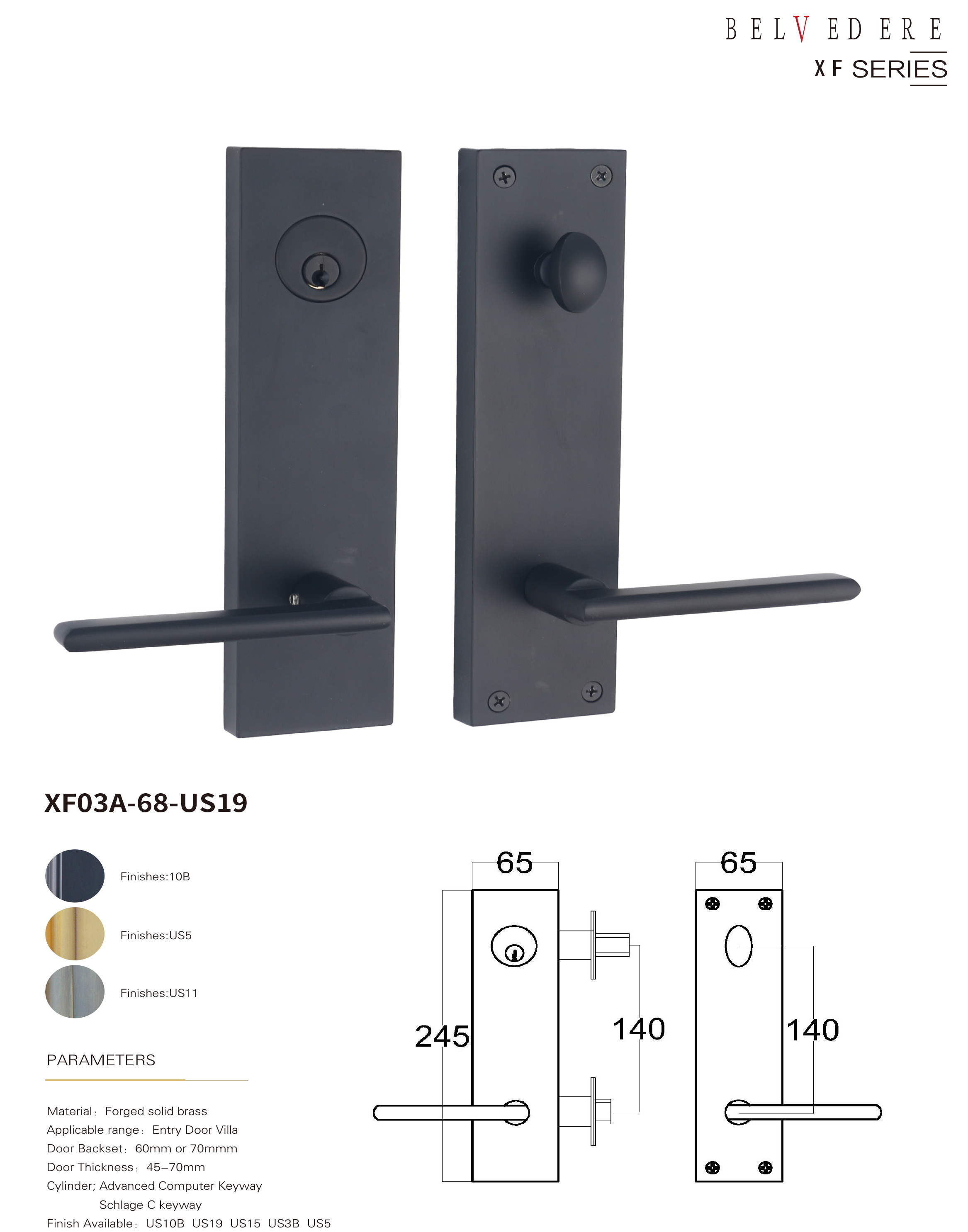 • 适配不同材质类型的别墅进户门:铜门,仿铜门,铸铝高,原木门,锻铁大门,防盗门等不同材质,从45-90mm不同厚度都能适配,单开门,子母门,双开门等不同风格