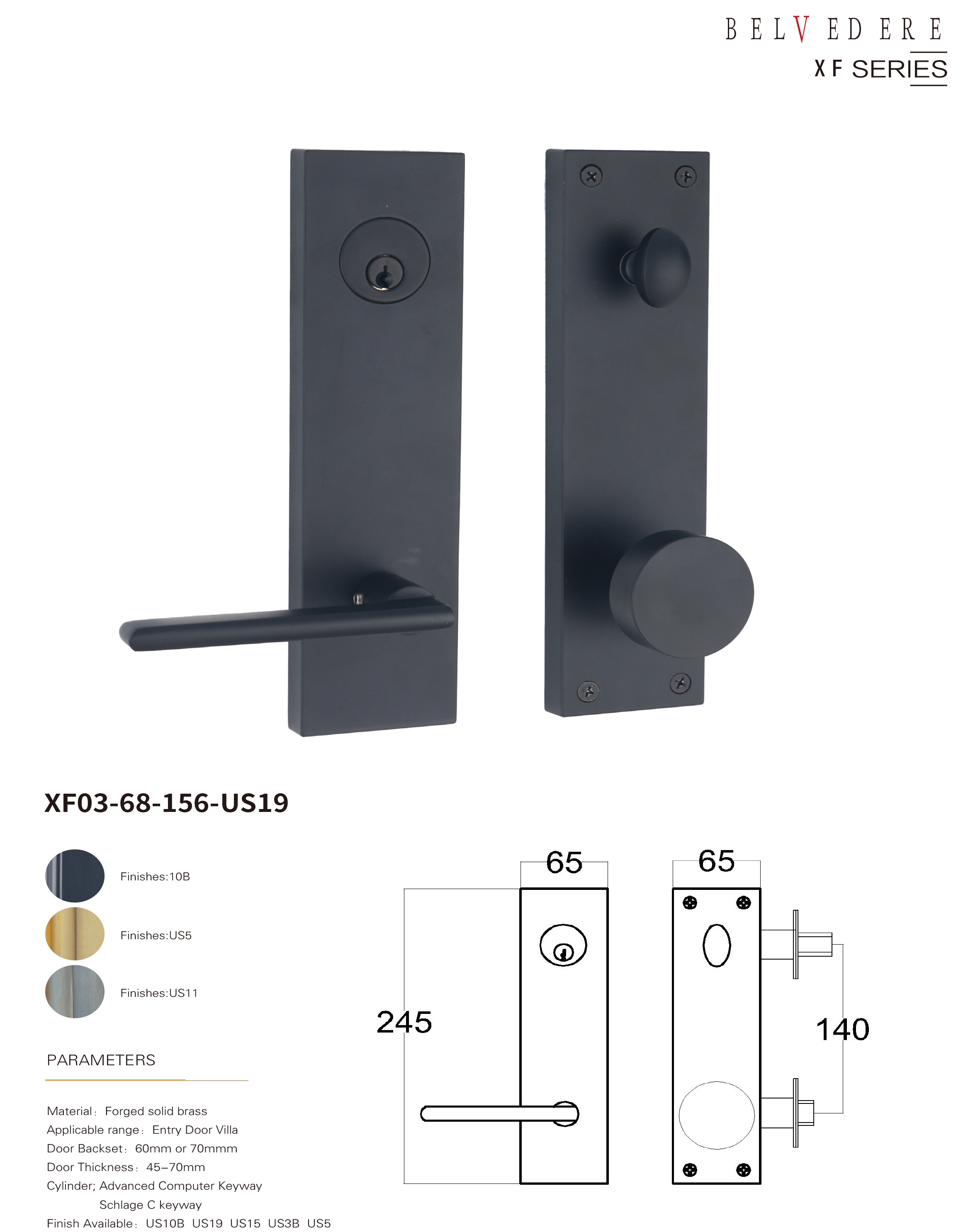 • 适配不同材质类型的别墅进户门:铜门,仿铜门,铸铝高,原木门,锻铁大门,防盗门等不同材质,从45-90mm不同厚度都能适配,单开门,子母门,双开门等不同风格