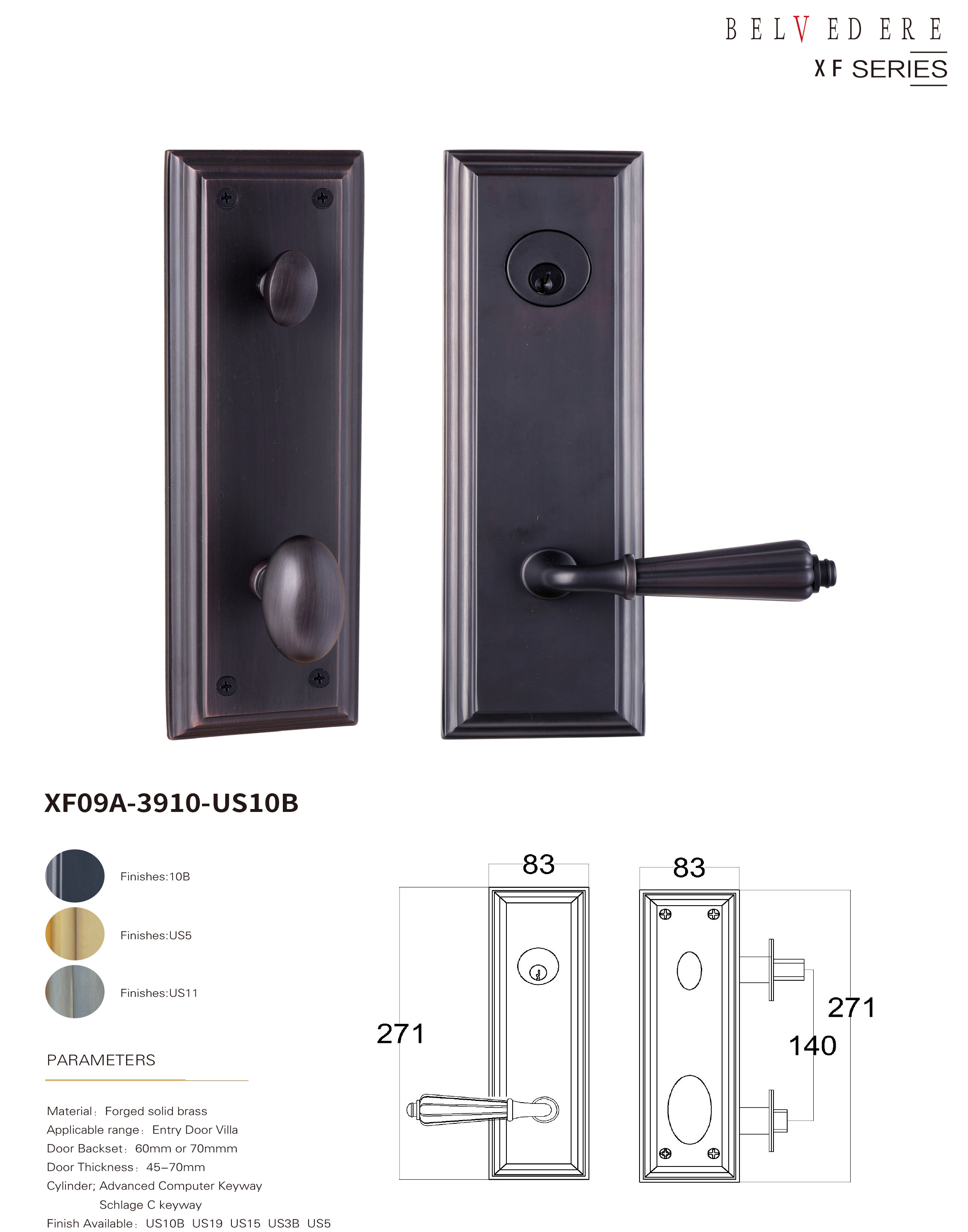 • 适配不同材质类型的别墅进户门:铜门,仿铜门,铸铝高,原木门,锻铁大门,防盗门等不同材质,从45-90mm不同厚度都能适配,单开门,子母门,双开门等不同风格